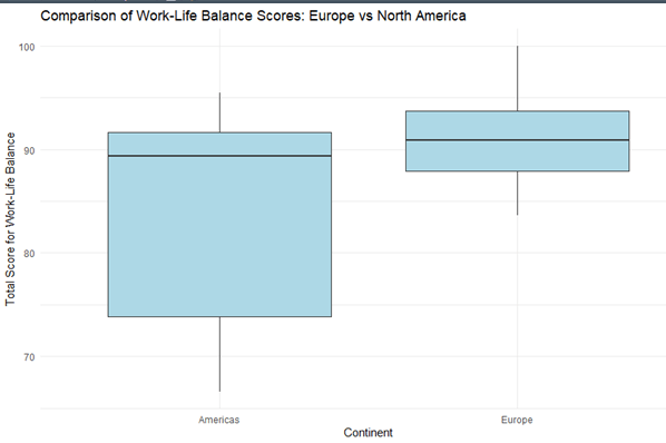 ggtitle(‘Comparison of Work-Life Balance Scores: Europe vs North America’) +