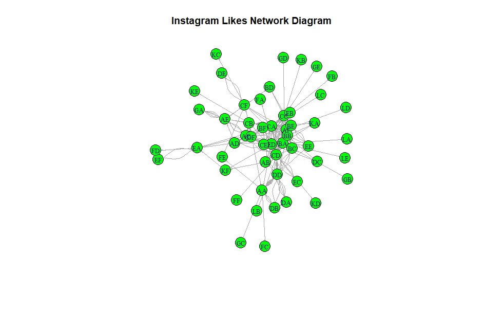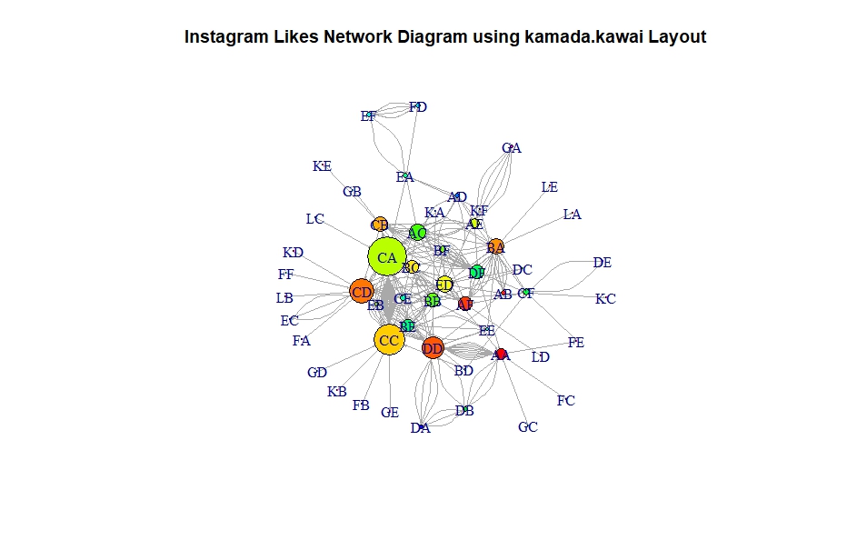 main = 'Instagram Likes Network Diagram using kamada.kawai Layout')