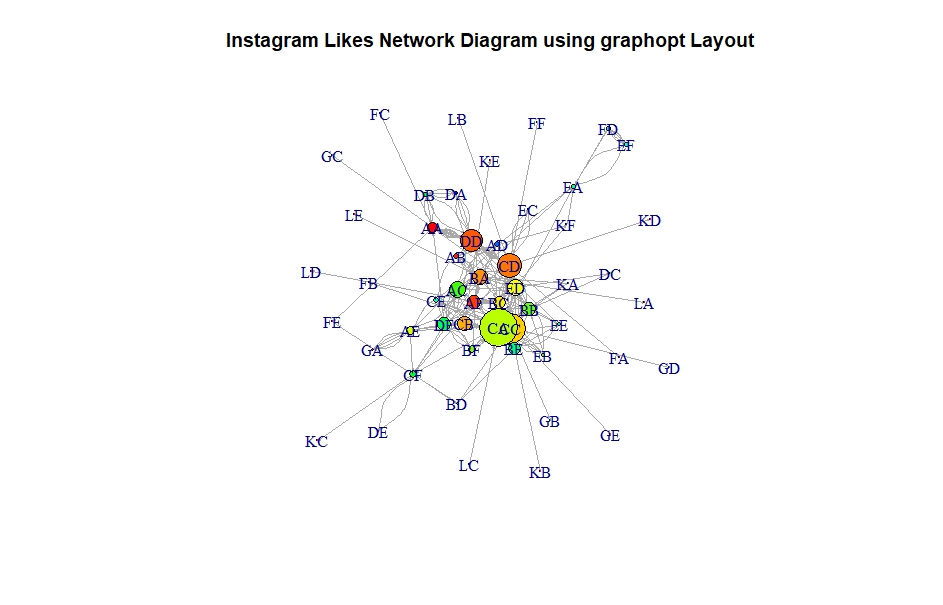 main = 'Instagram Likes Network Diagram using graphopt Layout')