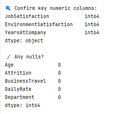 The dataset consists of 35 columns and 1,470 employees. It includes details such as job role, department, age, years of service, monthly income, satisfaction ratings, and whether the employee has left the company. It’s essentially a snapshot of a company’s workforce, showing both those who stayed and those who left, making it an excellent foundation for exploring turnover patterns. Each row represents an individual employee, and each column provides a different piece of context about their work experience.